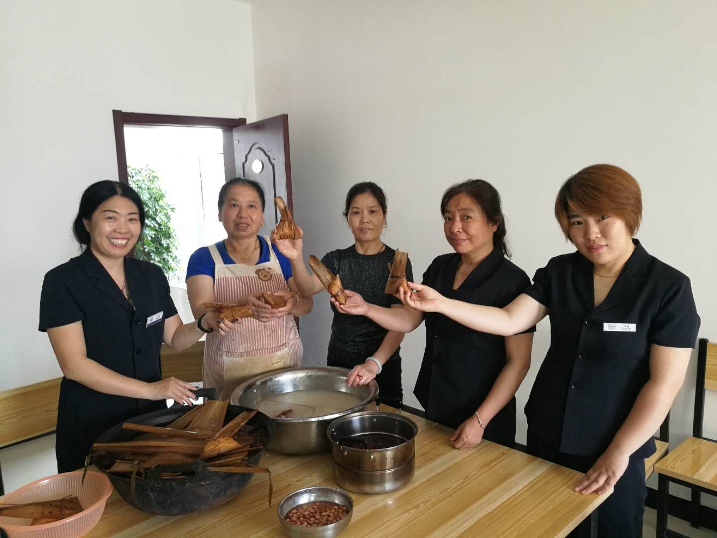 端午佳節期間,廚房大姐在精心為公司員工包粽子