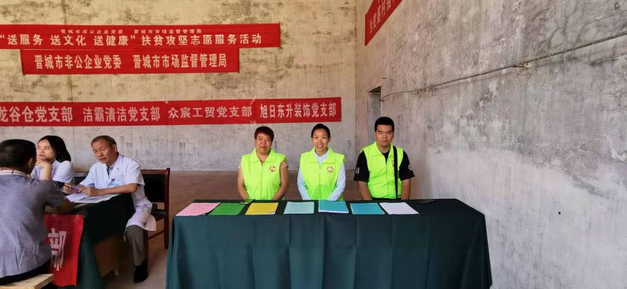 2019年8月27日-28日,潔霸清潔黨支部參加了晉城市非公企業(yè)黨委和晉城市市場(chǎng)監督管理局組織的“送服務(wù)·送文化·送健康”扶貧攻堅志愿服務(wù)活動(dòng)。