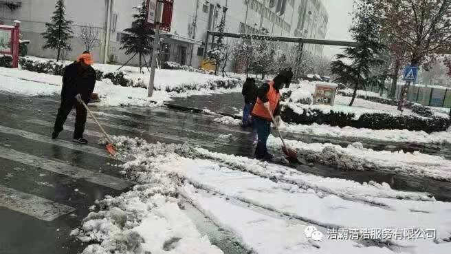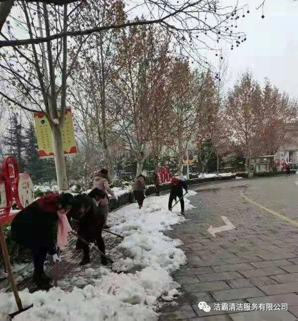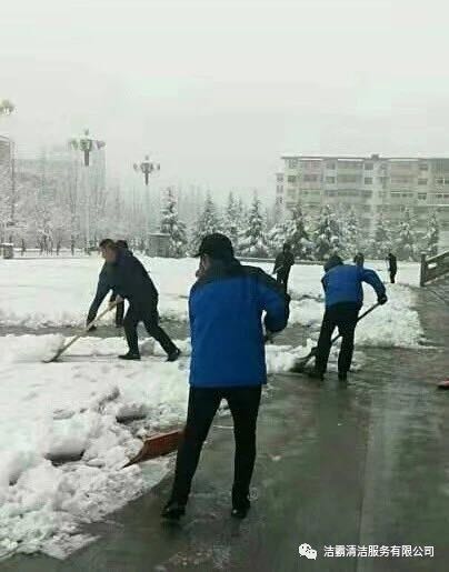 為了消除安全隱患,確保人們出行安全,潔霸公司各個(gè)項目部、服務(wù)點(diǎn)也積極行動(dòng)起來(lái),投身到掃雪活動(dòng)中。他們有的向地面撒鹽,有的用掃雪機清掃積雪,有的拿鐵鍬鏟雪,有的拿笤帚掃雪,有的用簸箕攬,也有的用桶子裝……雖然寒冷,但大家的心卻很溫暖,熱火朝天的掃雪場(chǎng)面給這個(gè)寒冷的冬季帶來(lái)一絲暖意。為掃出一片安全通道,大家共同努力著(zhù),天空中飄著(zhù)的雪花與大家忙碌的身影構成了雪后一道靚麗的風(fēng)景線(xiàn)。