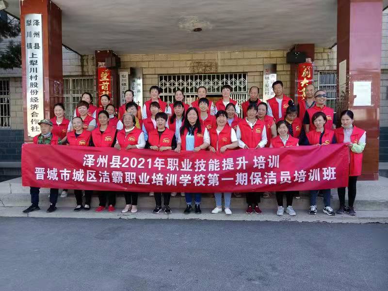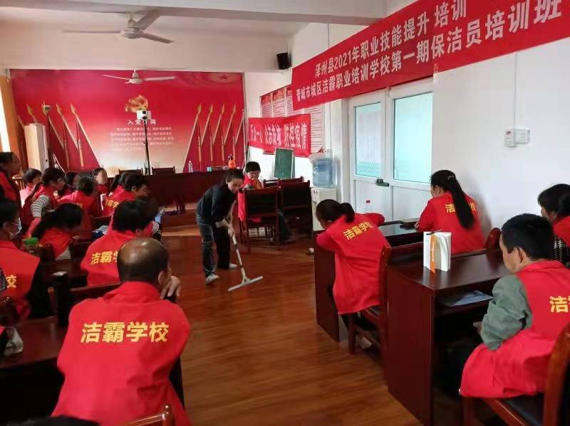 日前,由潔霸培訓學(xué)校承辦的澤州縣人社局2021年全民技能提升培訓第一期保潔員培訓班在犁川鎮犁川村村委正式開(kāi)班。