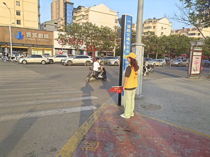 活動(dòng)中,支部黨員、入黨積極分子志愿者身穿志愿者馬甲,手持文明勸導旗子,化身為“交通安全守護員”。她們站在斑馬線(xiàn)兩側,對行人闖紅燈、橫穿馬路、不走斑馬線(xiàn)等不文明行為進(jìn)行勸阻,引導電動(dòng)車(chē)等非機動(dòng)車(chē)輛按信號燈指示行駛、不越線(xiàn)停車(chē)、不逆行,對非機動(dòng)車(chē)走機動(dòng)車(chē)道、闖紅燈、逆行、不戴頭盔等交通違法行為進(jìn)行勸導糾正,糾正制止不文明交通行為,宣傳勸導廣大市民遵守交通法規和規則,維護交通文明和社會(huì )秩序,自覺(jué)養成良好的文明交通習慣,時(shí)刻牢記遵法出行,確保自身及他人安全,共同營(yíng)造平安、和諧、有序的道路交通環(huán)境。