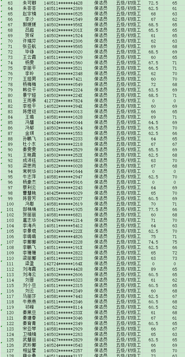 晉城市潔霸清潔服務(wù)股份有限公司職業(yè)技能等級認定中心現將2024年6月2日認定人員成績(jì)公示如下: