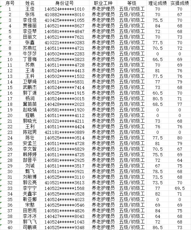 2024年7月14日第21批養老護理員初級認定人員成績(jì)公示