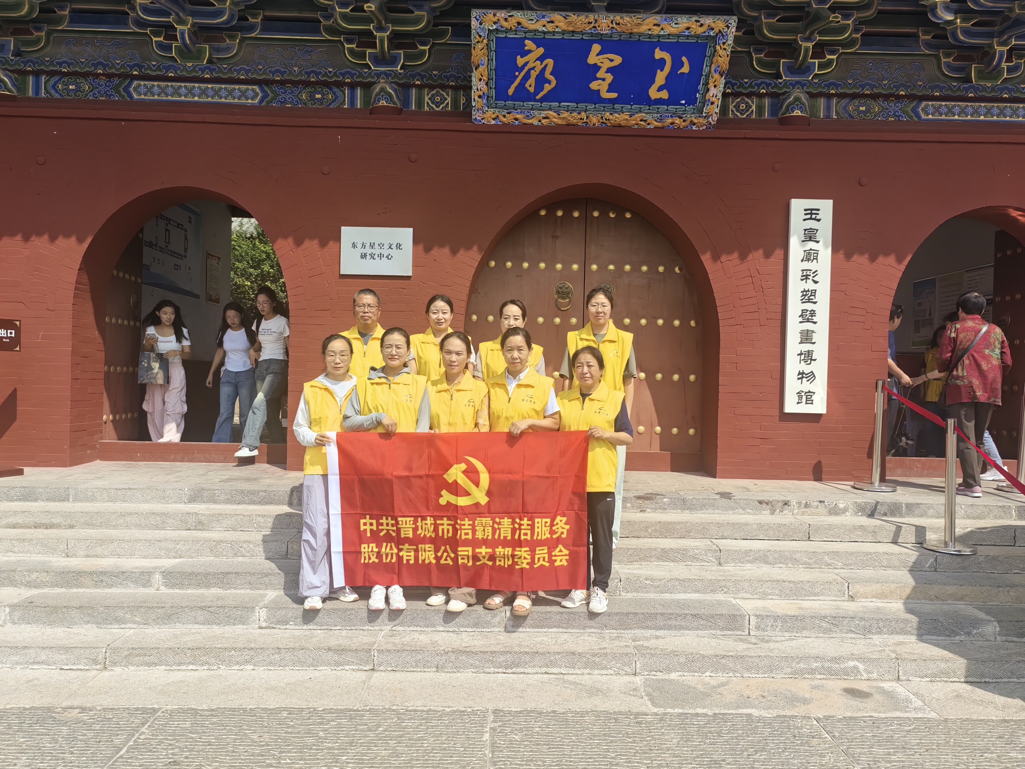 按照玉皇廟工作人員的安排,公司支部黨員和入黨積極分子化身為秩序維護員,在廟內的不同區域配合安保人員開(kāi)展文物保護、安全維護等工作。引導游客游覽路線(xiàn);提醒游客看管好隨身物品;提醒游客在拍攝文物時(shí)不得使用閃光燈輔助光源,關(guān)閉相機對焦輔助燈;為游客看護寵物等等,積極為游客營(yíng)造安全、有序的旅游環(huán)境。利用中午吃飯休息的時(shí)間,大家參觀(guān)了玉皇殿、成湯殿、二十八宿殿等,觀(guān)看了噓幻生真古代彩塑藝術(shù)展,了解了不同時(shí)期的代表性彩繪泥塑和制作過(guò)程,更加堅定了文化自信。