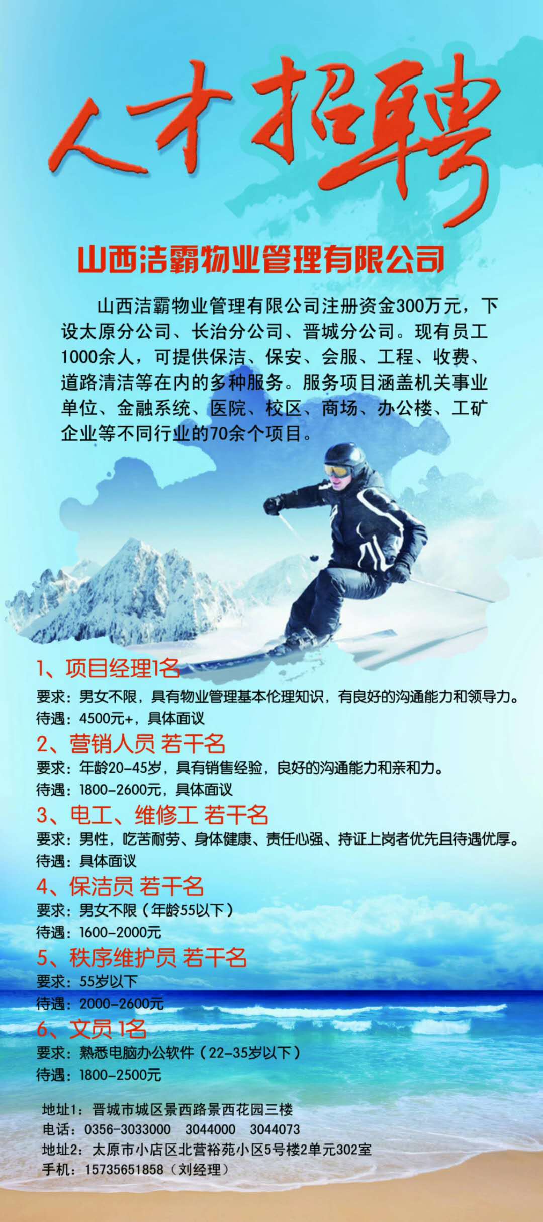 潔霸公司太原分公司現在正是招賢納才時(shí)候,希望各位有理想、有抱負的年輕人可以加入我們,共同為潔霸公司更加美好的明天而努力!