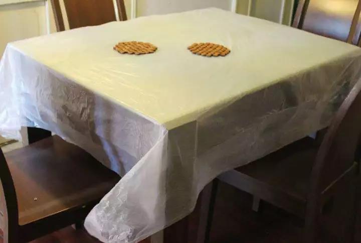 先在廚房窗戶(hù)上噴上清潔劑,再蓋上一層保鮮膜。