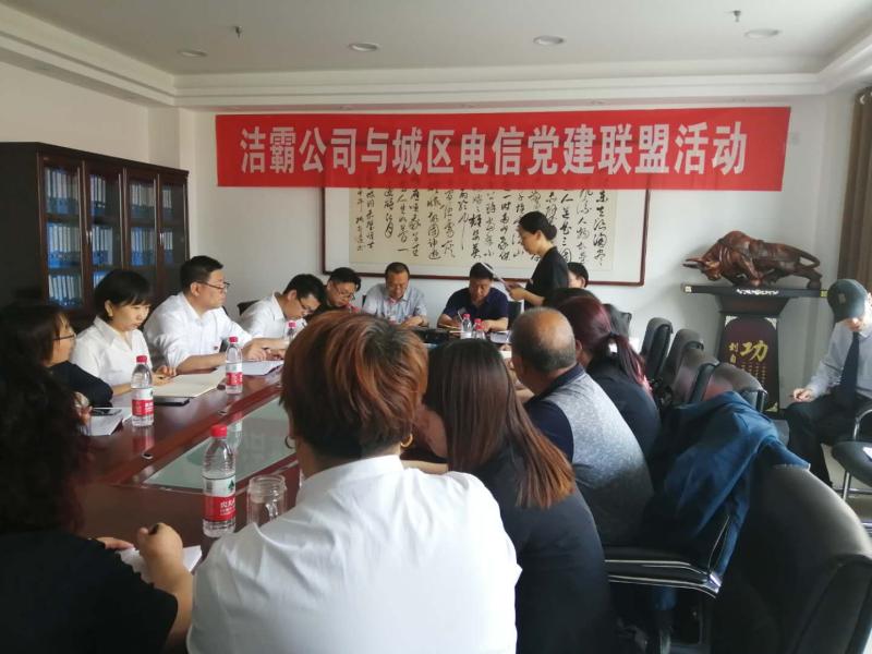 5月27日下午,潔霸公司黨支部與城區電信東城西城聯(lián)合黨支部開(kāi)展了黨建聯(lián)盟活動(dòng)。首先雙方對公司的概況以及黨支部成員的構成做了詳細的介紹?偨(jīng)理程晉軍及支部書(shū)記李山虎對城區電信公司黨支部成員的到來(lái)表示了熱烈的歡迎。