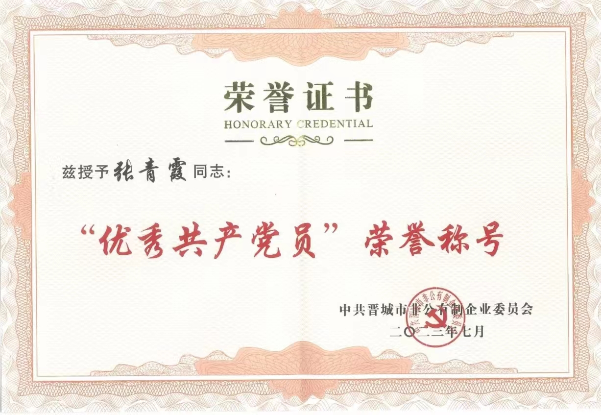 7月5日上午,市非公企業(yè)黨委慶祝建黨102周年暨“兩優(yōu)一先”表彰大會(huì )在在市市場(chǎng)監管局7樓會(huì )議室舉行。公司黨支部榮獲“先進(jìn)基層黨組織”榮譽(yù)稱(chēng)號,黨支部副書(shū)記張小梅被評選為“優(yōu)秀黨務(wù)工作者”,紀檢委員張青霞被評選為“優(yōu)秀共產(chǎn)黨員”。
