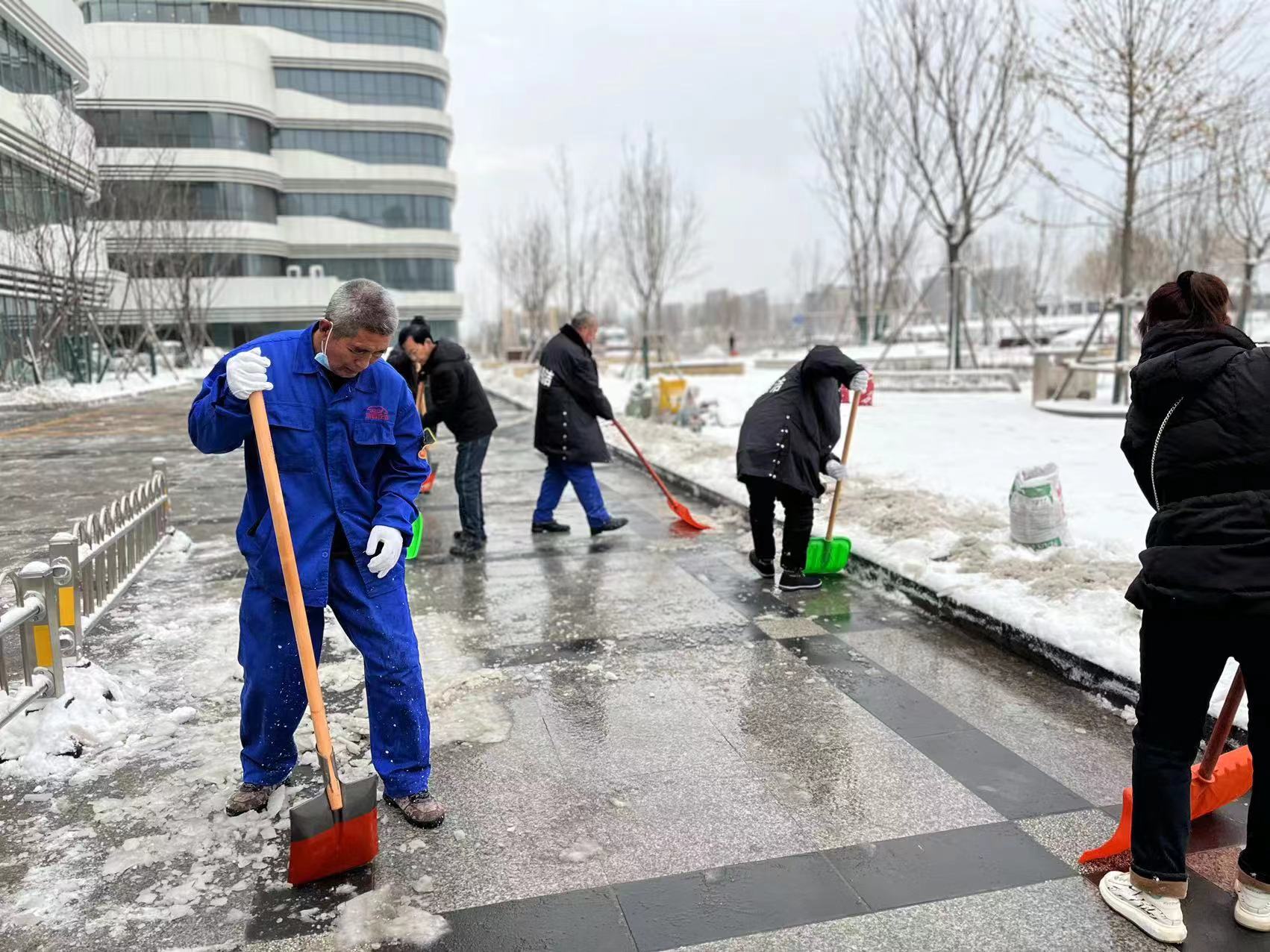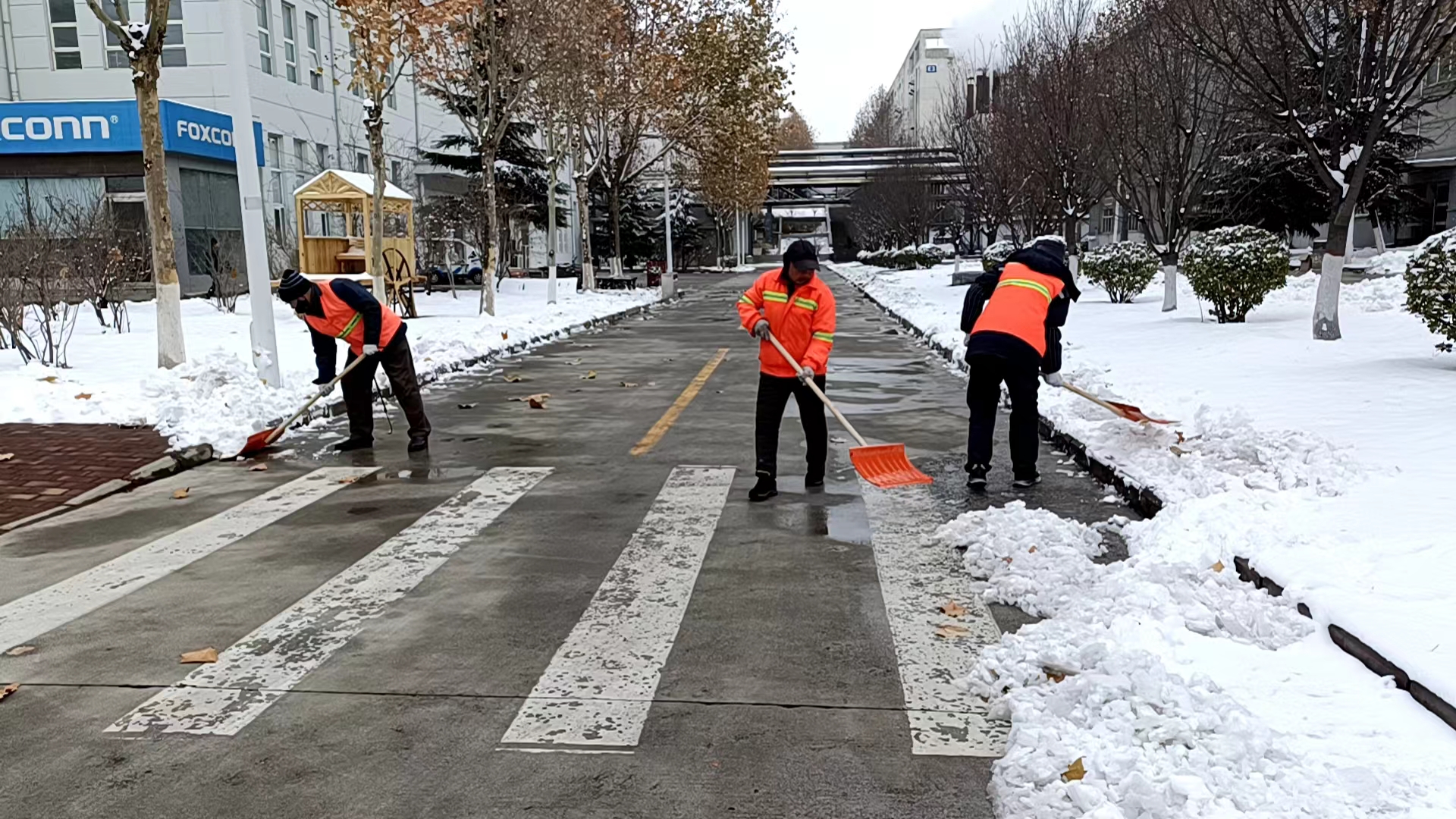 為保障群眾的安全以及道路的通暢,為廣大市民提供一個(gè)安全、便捷的出行環(huán)境,11日一大早,公司各個(gè)項目部、單位服務(wù)點(diǎn)的員工以雪為令,聞雪而動(dòng)積極行動(dòng)起來(lái),投身到清掃積雪的活動(dòng)中。下雪后的天氣雖然寒冷,但也無(wú)法阻擋大家掃雪的熱情,同志們個(gè)個(gè)干勁滿(mǎn)滿(mǎn)——有的用除雪鏟推,有的拿鐵鍬鏟,有的拿笤帚掃……大家分工明確,配合默契,各個(gè)掃雪現場(chǎng)都是熱火朝天,為群眾安全出行開(kāi)辟出了一條“暖心路”。充分彰顯了潔霸服務(wù),展示了潔霸形象。