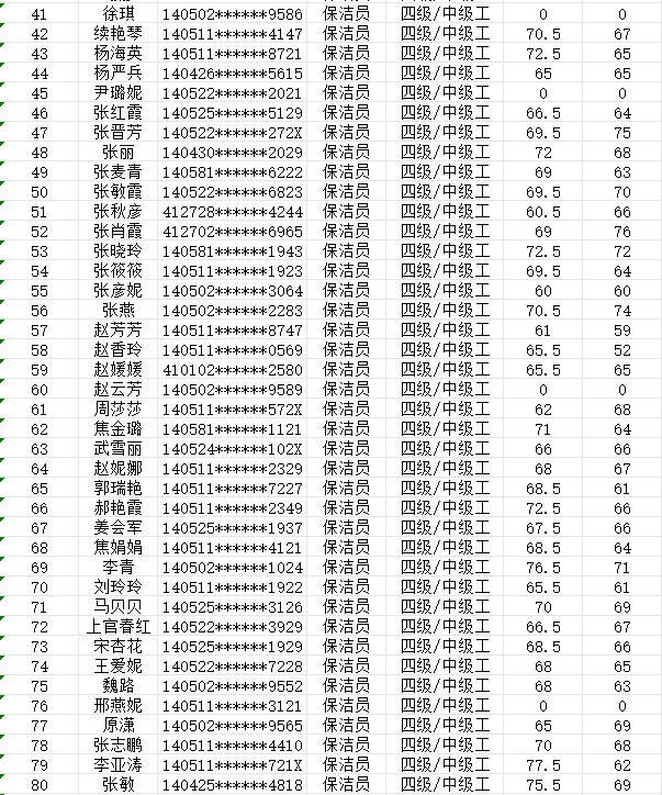晉城市潔霸清潔服務(wù)股份有限公司職業(yè)技能等級認定中心現將2024年2月4日認定人員成績(jì)公示如下: