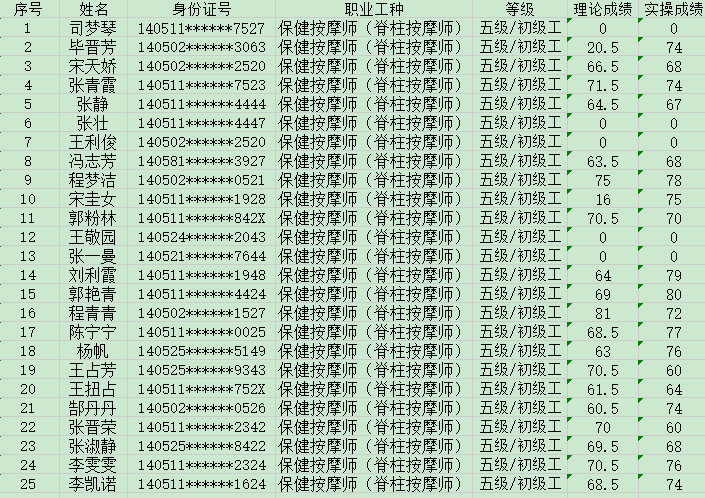 2024年5月24日第2批保健按摩師初級認定人員成績(jì)公示