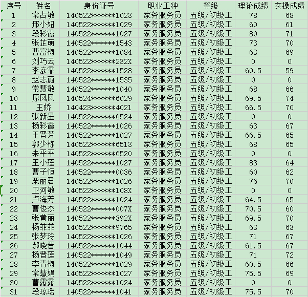 2024831日第33批家政服務(wù)員初級認定人員成績(jì)公示