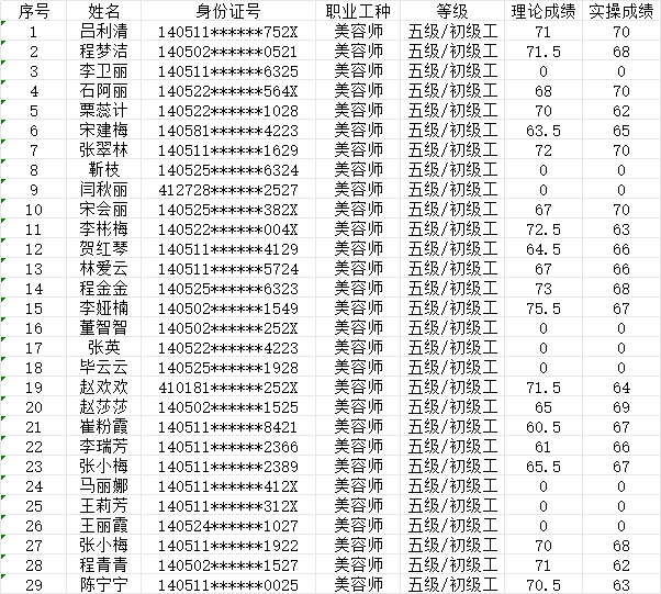 2024年9月21日第9批美容師初級認定人員成績(jì)公示