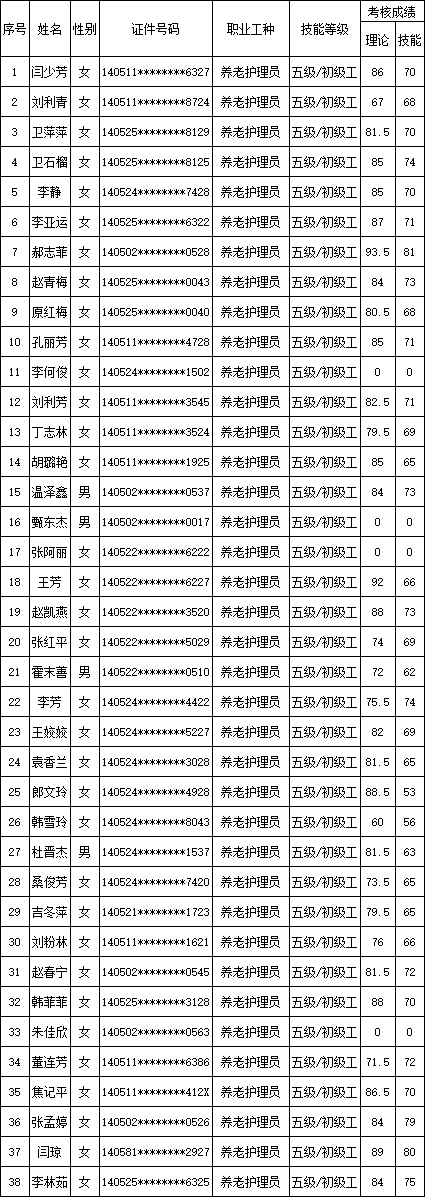 山西潔霸清潔服務(wù)集團股份有限公司職業(yè)技能等級認定中心現將2025年11月9日認定人員成績(jì)公示如下: